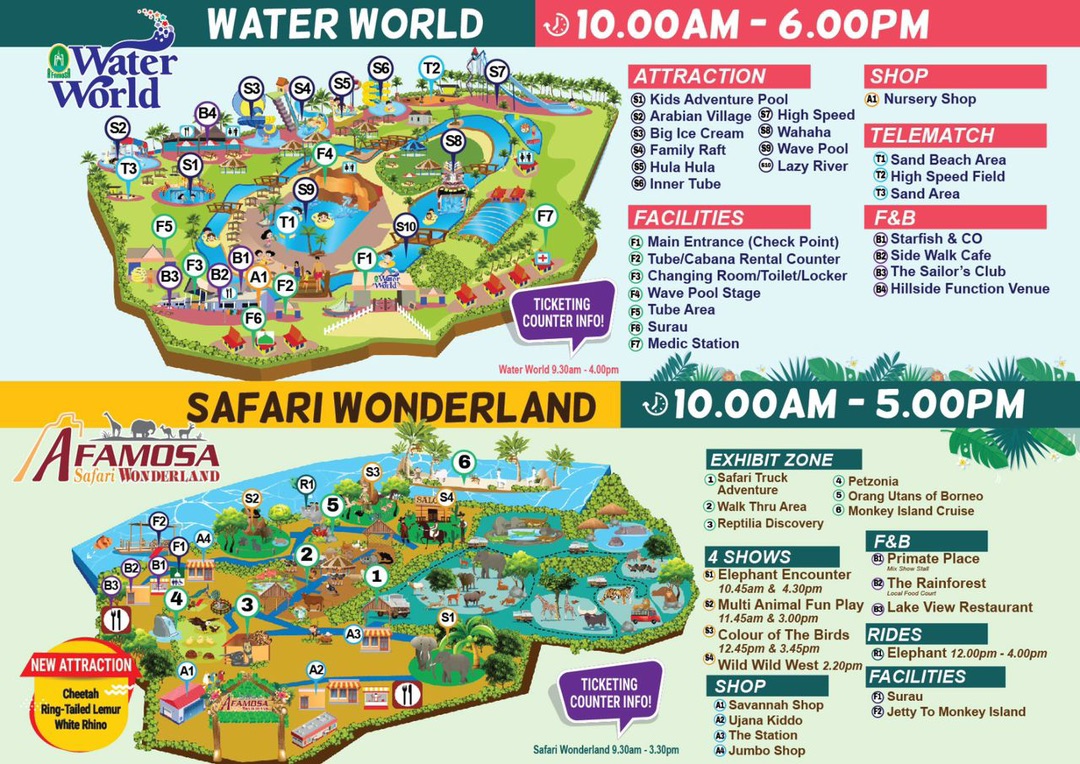 - By shuttle service: Conveniently travel between Safari Wonderland and Water Theme Park by riding the complimentary A'Famosa Resort shuttle service