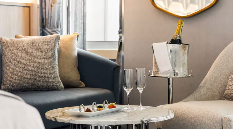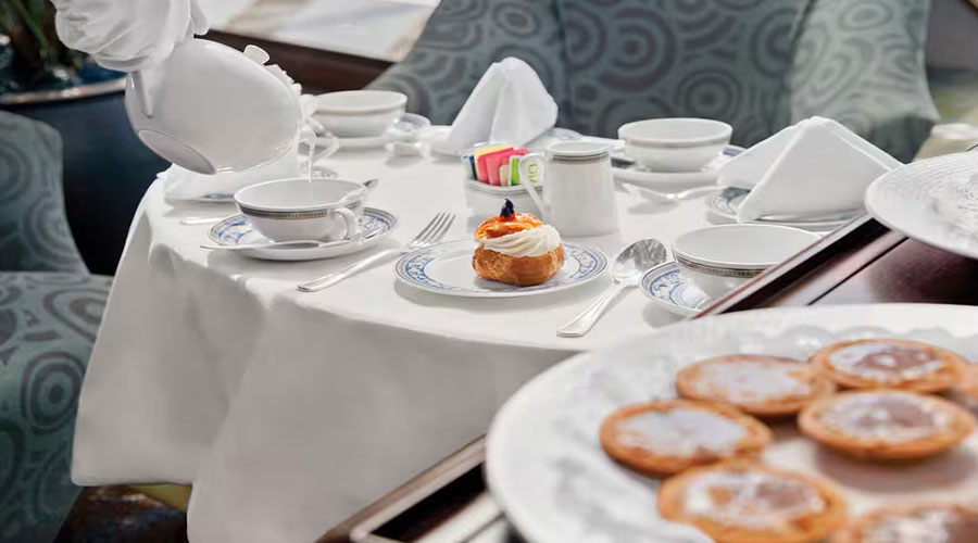 After a day of enriching adventures ashore or an enjoyable day on board, dining in the privacy of your suite or stateroom with our compliments is always a welcome possibility. A complete menu of varied dining experiences is available around the clock, featuring an extensive array of delectable breakfast, lunch and dinner items. All suites and staterooms have the added luxury of enjoying a full, hot breakfast in-room and those staying in Concierge Level or above have the additional privilege of ordering from an expanded lunch and dinner room service menu from The Grand Dining Room. Suite guests have the ultimate indulgence of enjoying course-by-course meals from the comfort of their spacious sanctuaries. Revel in the private luxury of your suite or stateroom, and enjoy an exquisite meal on your tranquil veranda as you take in spectacular seascapes.